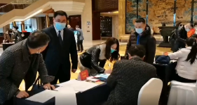 區人大代表分別去到各自代表團報到地點報到并領取會議資料